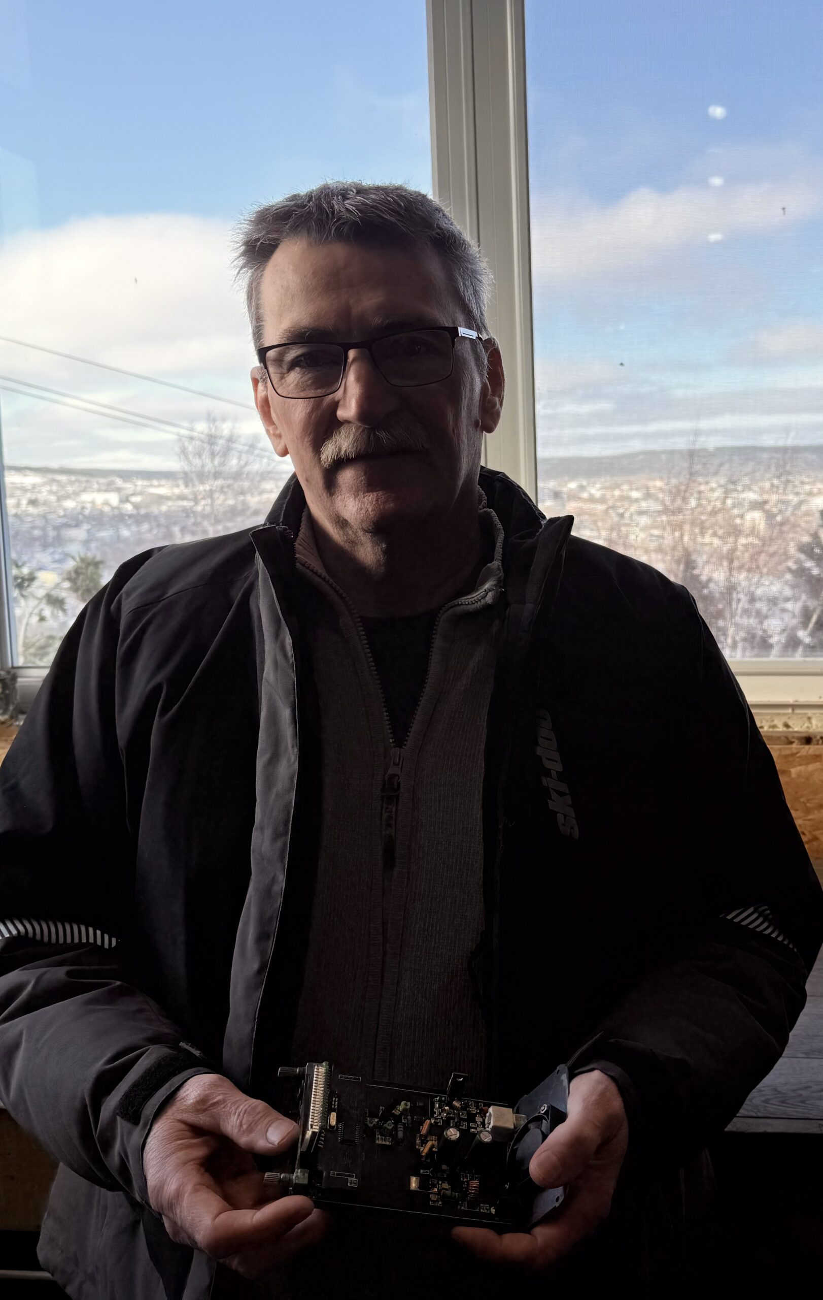 Wayne Collins holding a radio transmitter
