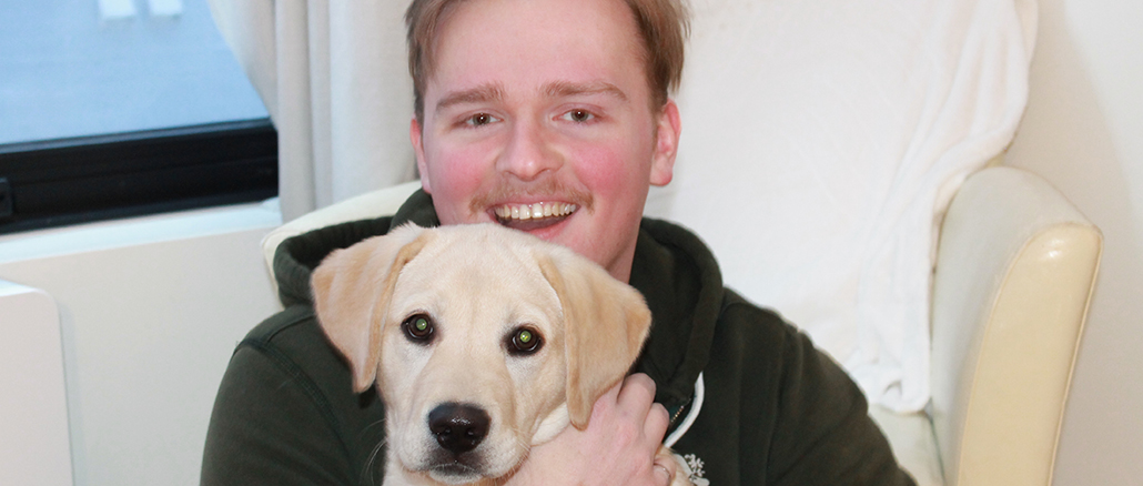 Benjamin Oates with his Labrador puppy, Gus