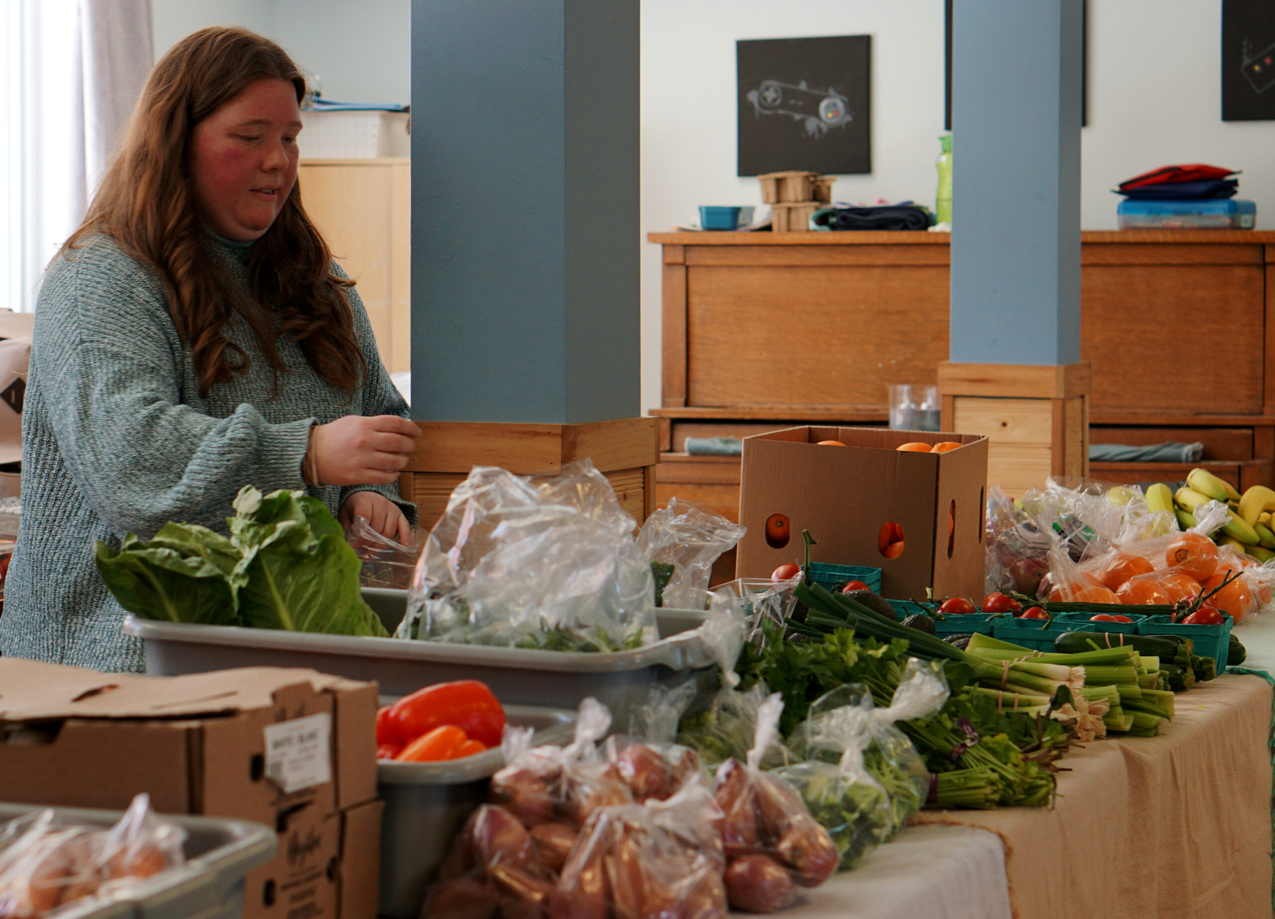 DSC03143 copy Leah Vatcher prepares the produce stand at Food On The Move’s Froude Avenue pop up. /Noah Johnston, Kicker Leah Vatcher prepares the produce stand at Food On The Move’s Froude Avenue pop up.