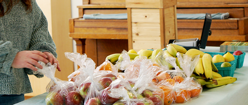 Leah Vatcher touches up the produce stand at Food On The Move’s Froude Avenue pop-up.